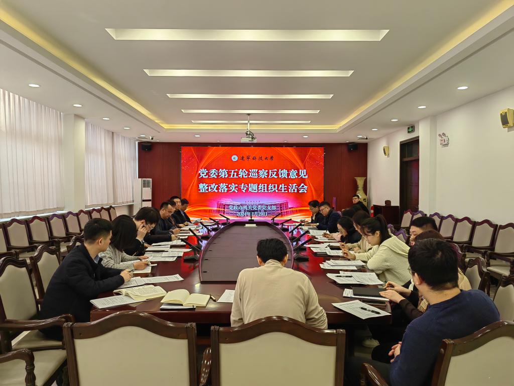 229日上午,党政办机关党委党支部机关楼120(东)会议室召开学校党委第五轮巡察反馈意见整改落实专题组织生活会,开展民主评议党员。党支部书记李宁主持会议校党委书记李平以普通党员身份参加会议