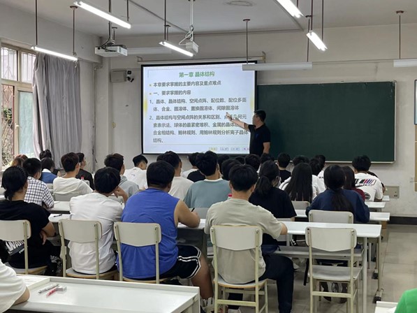 8月28日早8点,材料与冶金学院新学期教学工作平稳有序的进行。为近距离了解学生的学习状态,倾听学生对新学期学习的想法与建议。学院领导班子成员集体走进课堂,现场听取了学院“开学第一课”——黄天荡老师讲授的材控2022级1、2班的《材料科学基础》。