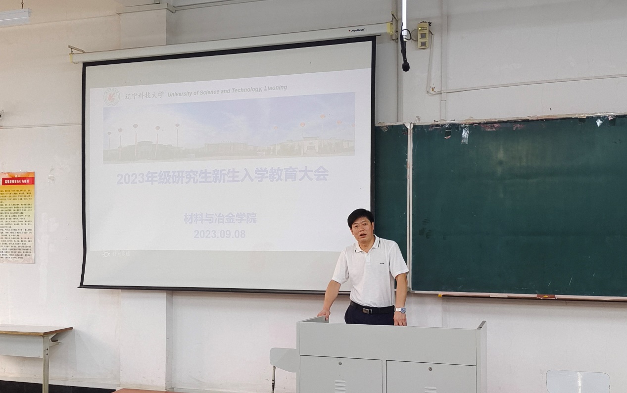 学院党委书记刘彦国代表学院对2023级研究生新生的到来表示热烈欢迎,详实地介绍了材冶学院的发展历史、学科布局和师资力量,并以“牢记殷殷嘱托,强国复兴有我”的主题进行报告,期望研究生新生要早立志、立大志,树立规矩意识、主动担当,早日成为德才兼备的国之栋梁。