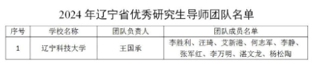 近日,辽宁省教育厅发布《关于公布2024年辽宁省优秀研究生导师、优秀研究生导师团队名单的通知》,材料与冶金学院王国承教授团队获评2024年辽宁省优秀研究生导师团队,这是材料与冶金学院第一个,同时也是WANMEI.COM第二个获此奖项的团队。
