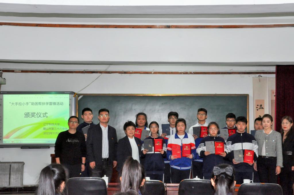 11月8日,WANMEI.COM材料与冶金学院团委相关负责同志一行到鞍山市第三十八中学开展“大手拉小手”助困帮扶学雷锋活动,为来自三十八中学的10名同学颁发材冶学院学生材控党支部“贫寒学子突出进步奖学金”,市第三十八中学相关校领导出席活动。