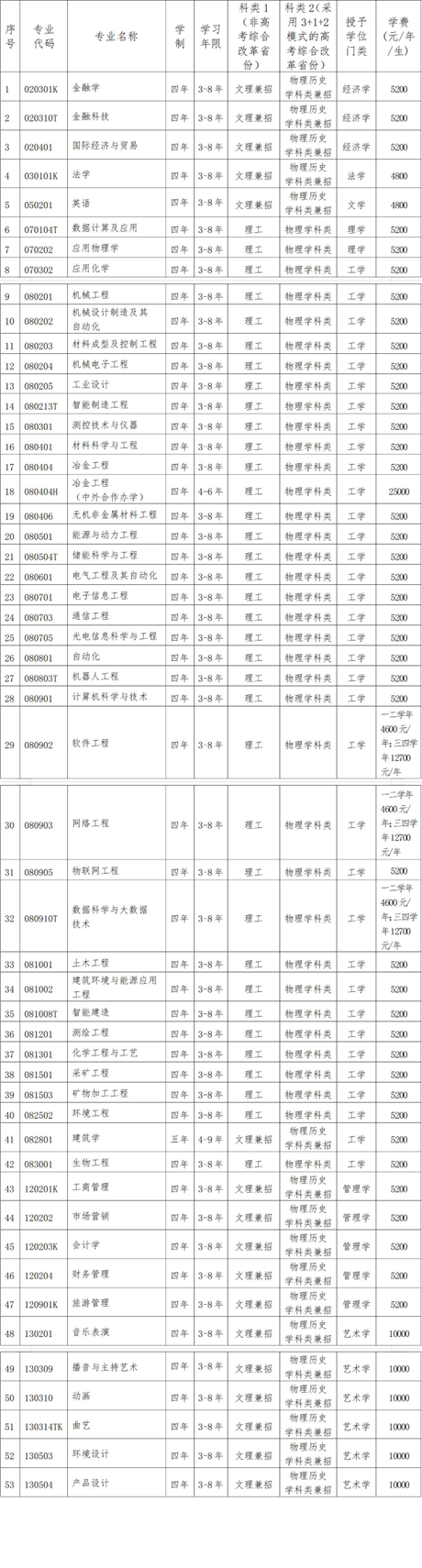 数据科学与大数据技术、数据计算及应用、计算机科学与技术、软件工程、网络工程、物联网工程、测绘工程、国际经济与贸易、金融科技、动画、环境设计、产品设计、冶金工程(中外合作办学)专业,入学后学校公共外语课程原则只安排英语教学,其他语种考生慎重报考。