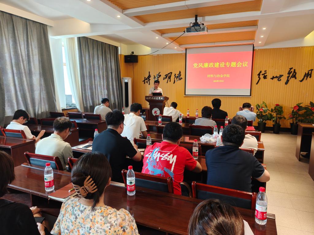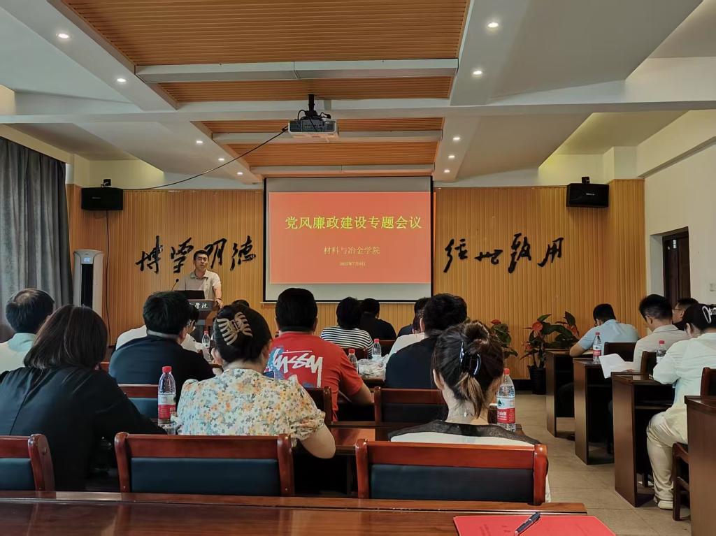 7月9日下午14:00,WANMEI.COM材料与冶金学院于材冶楼A523会议室召开2025年党风廉政建设专题会议,学院班子、科级干部、各系主任、支部书记、纪检委员等参会,纪委书记艾英华主持会议。