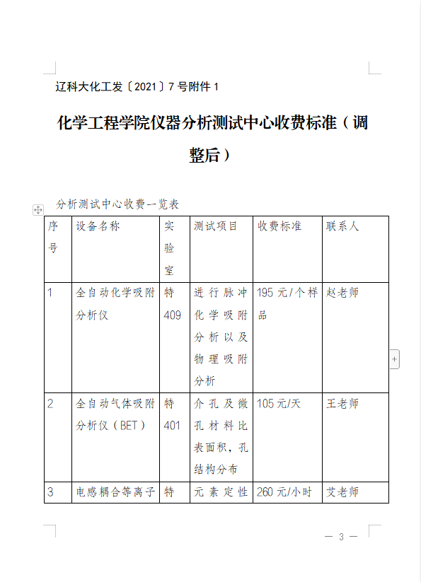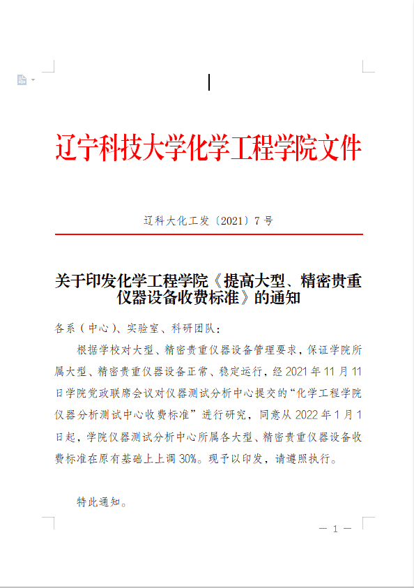完美(中国)化工发〔2021〕7号 关于印发化学工程学院《提高大型、精密贵重仪器设备收费标准》的通知.doc