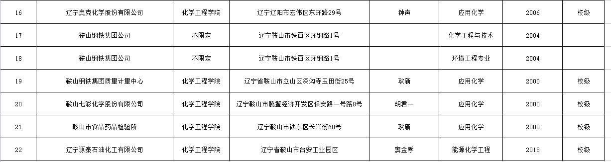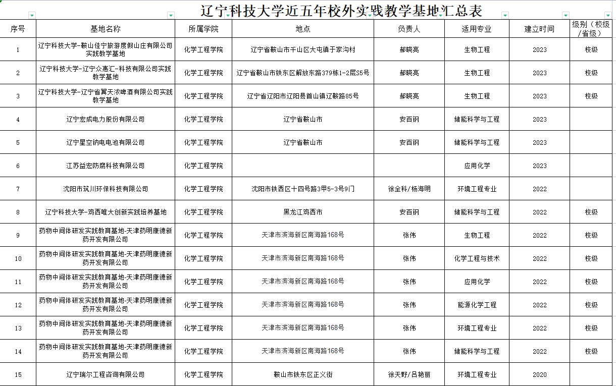 化工学院校外实习、实训基地汇总表