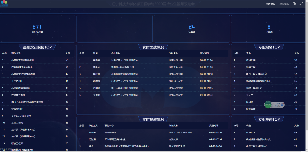 此次双选会,共有70家企业提供职位186个,112名校内毕业生入场求职。截至双选会结束,校内外毕业生共投递简历871人次,初步达成就业意向48人。