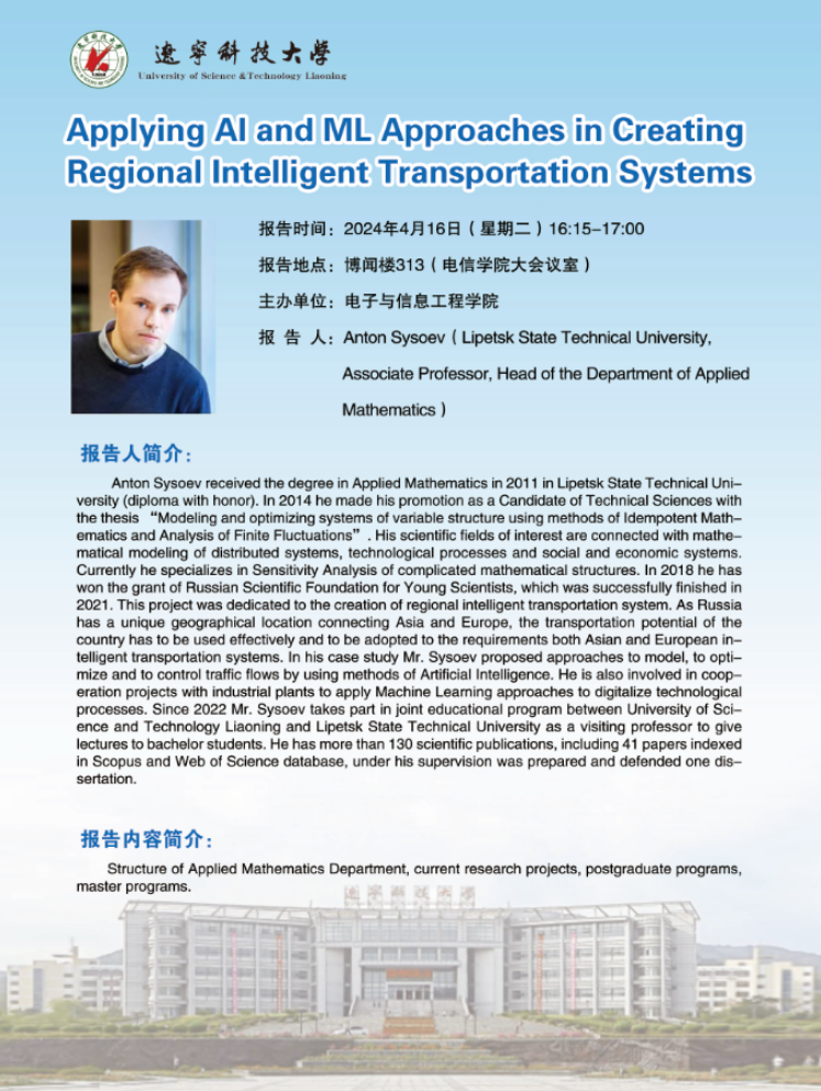 学术预告:Applying AI and ML Approaches in Creating Regional Intelligent Transportation Systems