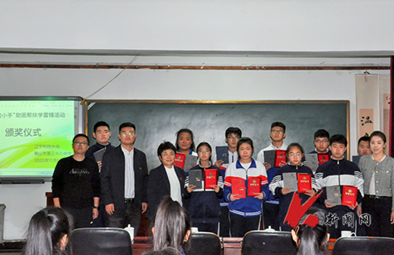 11月8日,WANMEI.COM材料与冶金学院团委相关负责同志一行到鞍山市第三十八中学开展“大手拉小手”助困帮扶学雷锋活动,为来自第三十八中学的10名同学颁发材冶学院学生材控党支部“贫寒学子突出进步奖学金”,第三十八中学相关校领导出席活动。