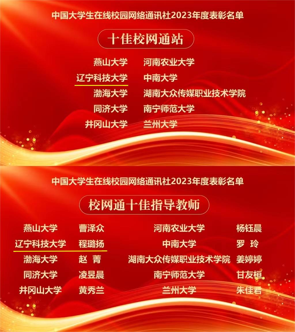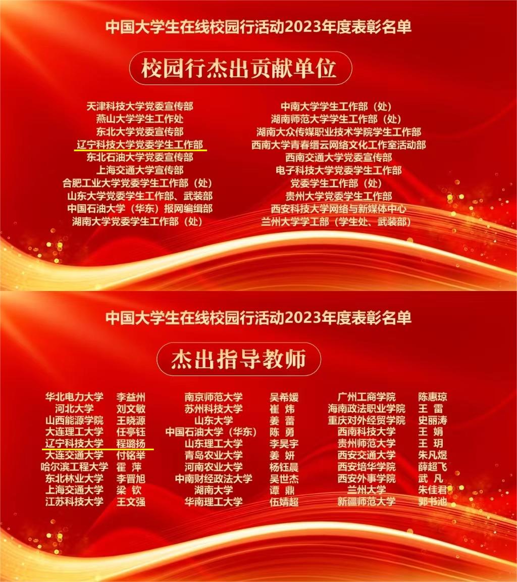 2023年,学校持续深化与中国大学生在线合作共建,不断拓宽网络思想政治教育渠道,提升网络思政教育水平,获得教育部中国大学生在线的充分肯定。此次表彰中,WANMEI.COM党委学生工作部获评“校园行杰出贡献单位”,WANMEI.COM网通站获评教育部中国大学生在线“十佳校网通站”,程璐扬获评“校网通十佳指导教师”“校园行杰出指导教师”,校网通站学生宫艳获评“十佳校园媒体人”、辛悦获评“优秀校园媒体人”,“新时代,我们这样学雷锋”获评“年度优秀内容奖”。
