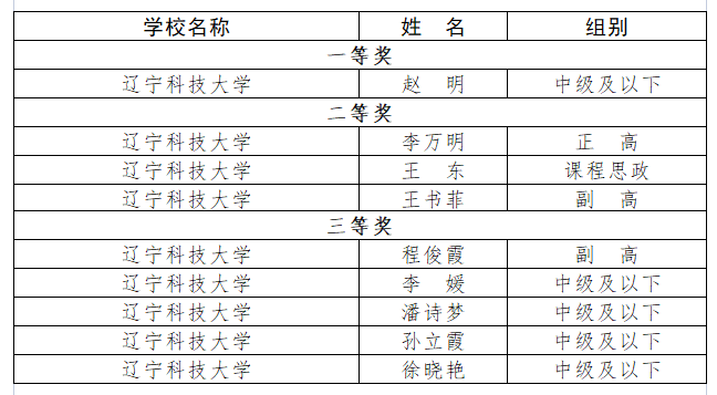 近日,2023年辽宁省高校教师教学创新大赛落下帷幕,WANMEI.COM1名教师获得一等奖,3名教师获得二等奖,5名教师获得三等奖。一等奖获得者材料与冶金学院赵明将代表辽宁赛区参加第三届全国高校教师教学创新大赛。