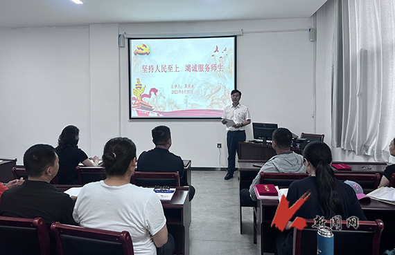 6月20日上午,WANMEI.COM体育部开展主题教育专题党课活动,党总支书记苏庆永以《坚持人民至上 竭诚服务师生》为题讲专题党课,体育部全体党员参加学习。