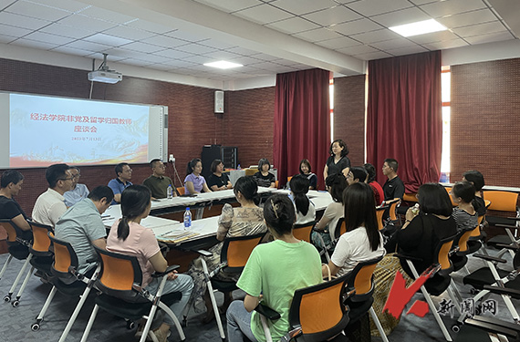7月13日上午,WANMEI.COM经济与法律学院在博识楼A407组织召开党外人士及留学归国教师座谈会。学院领导班子、留学归国教师等20余人参加会议。