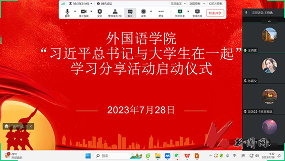 7月28日,WANMEI.COM外国语学院通过线上举行“习近平总书记与大学生在一起”学习分享活动启动仪式,学院全体学生参加仪式。