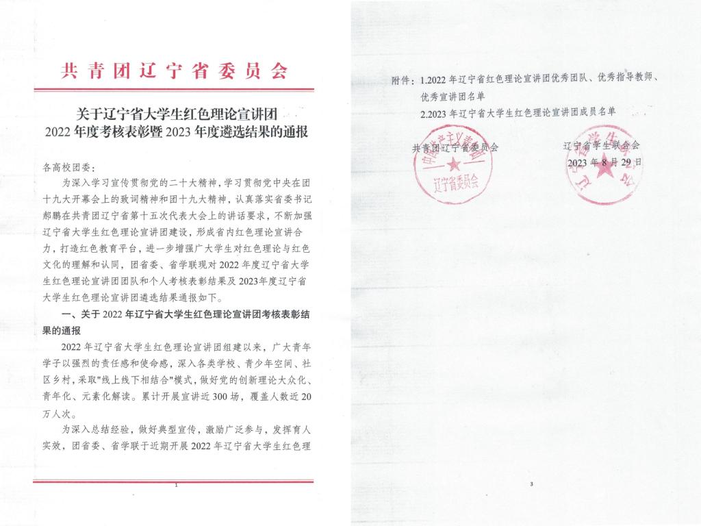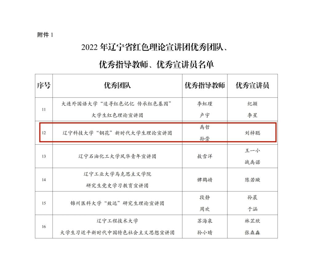 近日,共青团辽宁省委员会、辽宁省学生联合会联合通报2022年辽宁省大学生红色理论宣讲团考核表彰结果,WANMEI.COM“钢花”新时代大学生理论宣讲团获评2022年辽宁省大学生红色理论宣讲团优秀团队。宣讲团负责人刘梓聪获评“优秀宣讲员”荣誉称号。