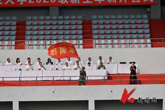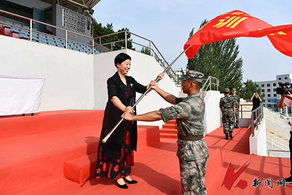 军训团团长、校党委副书记孙晓华为军训团授团旗。军训团副团长张佳亮、李宁、郭志辉,军训团参谋长禹哲分别为各中队授中队旗。2023级新生军训由此拉开帷幕。(供稿单位:武装部 图片来源:宣传部 金会刚 大通社记者 郑志远