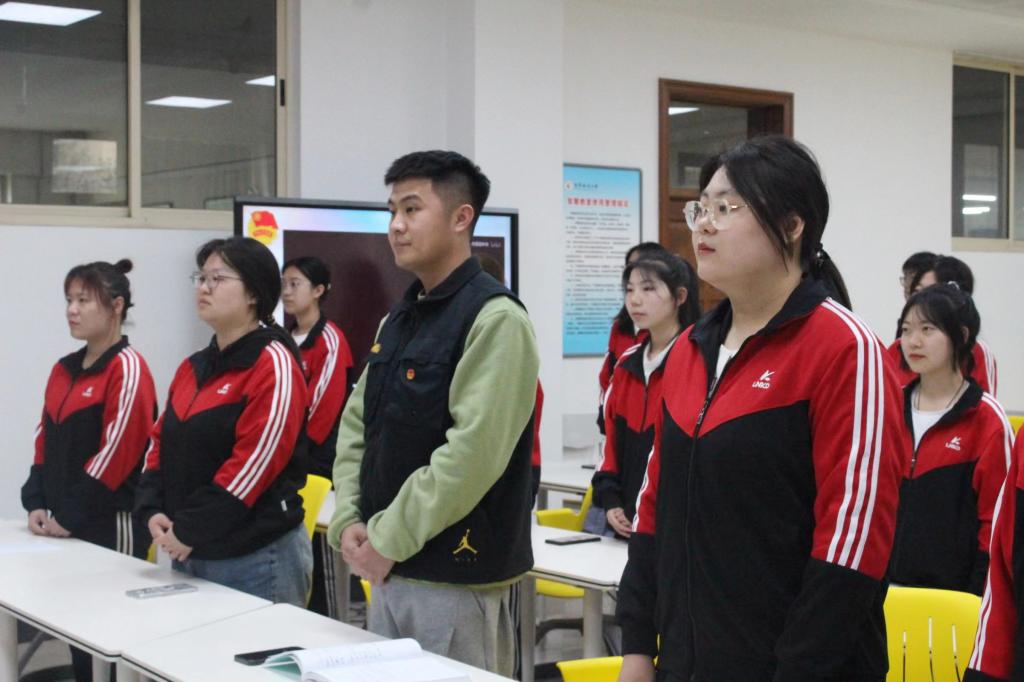 金融22-1班王舒峣、张诗雨分别带领同学们奏唱团歌、重温入团誓词,在慷慨激昂的歌声与充满赤诚的宣誓中展现出了属于新时代青年的青春风采。金融22-1班团支部书记肖荟迪带领大家学习了中国共产党的光辉历程,为同学们讲述了抗日战争的历史意义以及发生在鞍山的红色故事。她指出作为共青团员应该以崇仰之情、敬畏之心认真学习党的历史,从中汲取新的智慧和力量,继续为新时代、新征程而奋斗。金融22-1班于翔琳分享了属于自己的青春故事,以亲身经历鼓励同学们要肩负起中华民族伟大复兴的责任与使命,在坚定的奋斗中彰显青春力量。