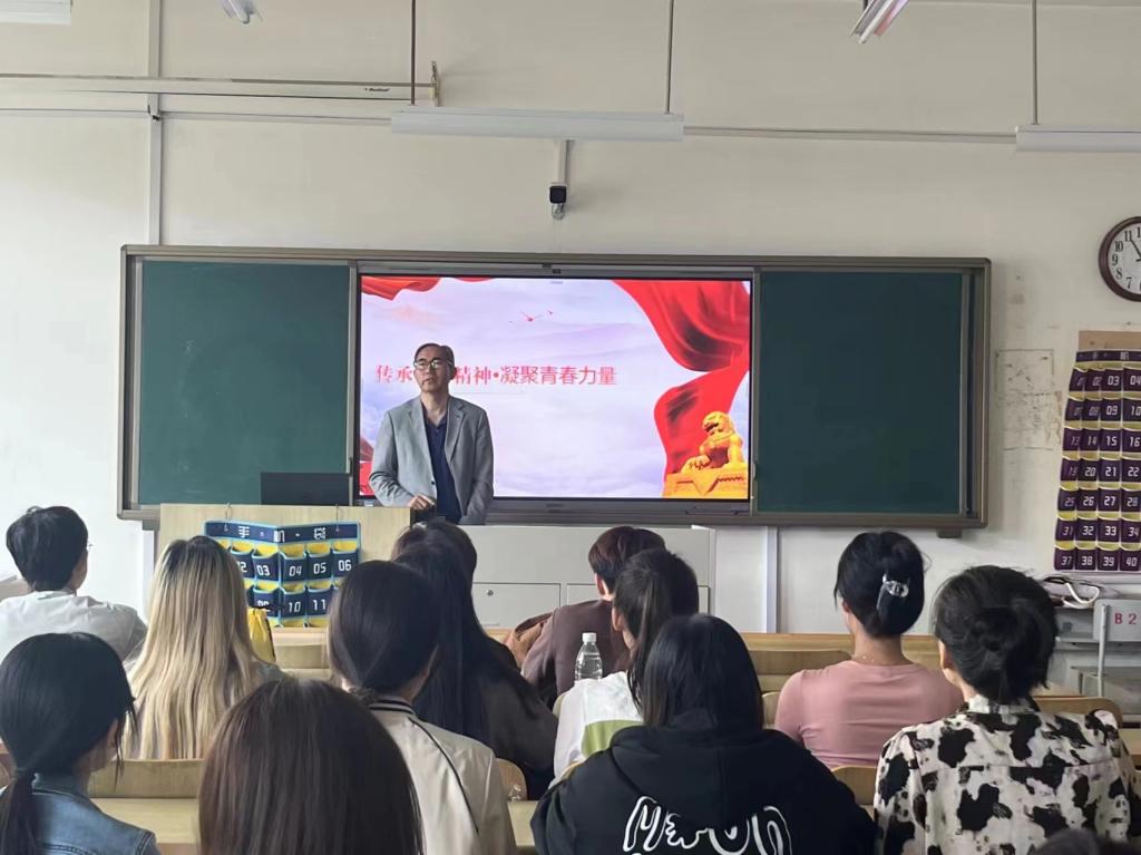 会上,辅导员以“传承五四精神 凝聚青春力量”为主题,从“五四运动”的历史背景及意义讲起,带领学生共同回望历史,在一段段感人的故事中、在一份份炙热的情感中了解“五四运动”的发展历程,感悟革命先辈的初心使命和家国情怀。辅导员以各行各业的当代杰出青年为例来向同学们深入讲解五四精神的内涵、五四精神的当代体现以及如何传承五四精神等方面的内容,并带领学生学习习近平总书记对青年的寄语,引导学生不辜负总书记的殷切期盼,大力弘扬和践行五四精神,以奋斗姿态激扬青春,坚定信念、敏于求知,把个人的理想追求融入党和国家事业中去,不负韶华、不负时代、不负人民。