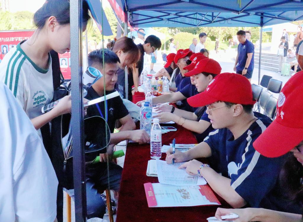 志愿者穿梭的身影成为了校园里最亮丽的风景线