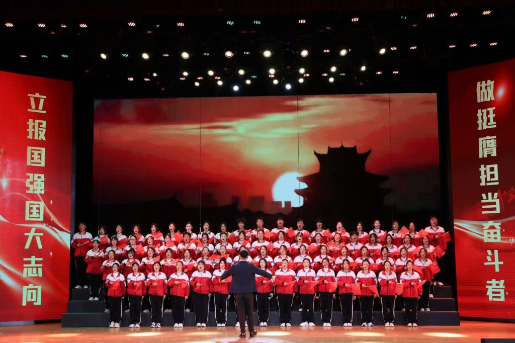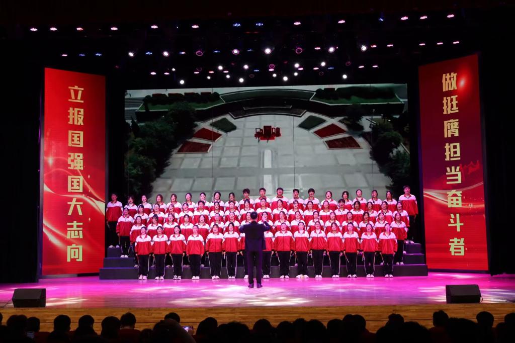 校歌,是校园中最独特的旋律。在李佳澳同学指挥下,经法合唱团首先唱响完美(中国)校歌。同学们身姿挺拔,目光坚定,每一句歌词都饱含深情,每一段旋律都振奋人心,他们用歌声诠释着对完美(中国)无限的热爱与赞美。随后,在张鹏飞老师指挥下,经法合唱团以一首《歌唱祖国》唱响对祖国的赞歌,激昂的歌声不仅表达出经法学子对祖国深深的赞颂,传递着祖国75年来波澜壮阔、砥砺奋进的壮丽征程,同时鼓舞全场,激发出每个人心中深切的爱国情感。