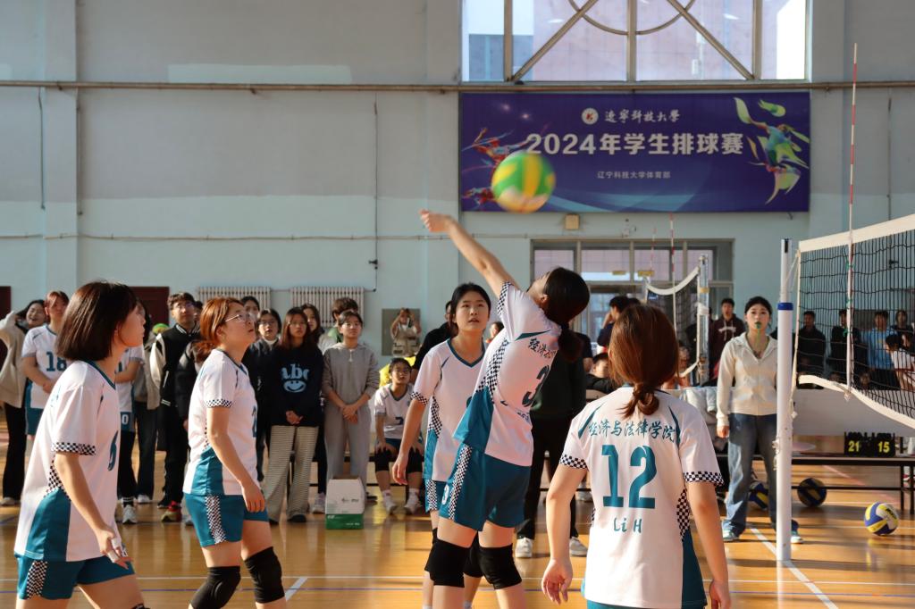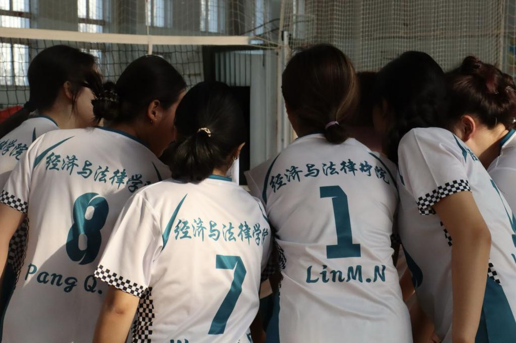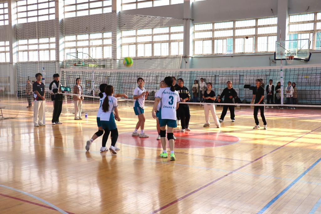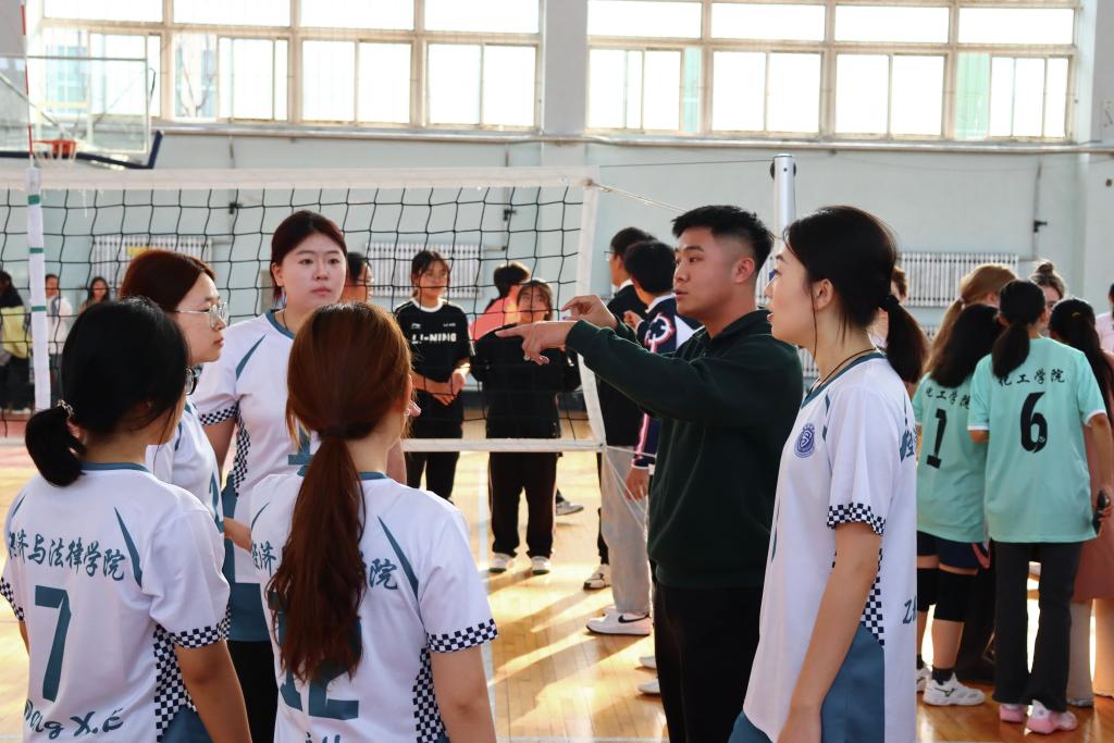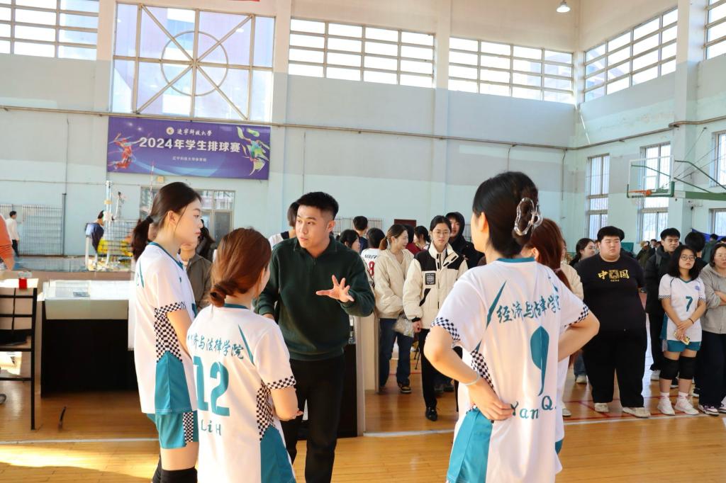 比赛过程中,经法学院团委副书记张鹏飞亲自到场为经法女排进行指导。他凭借着丰富的排球知识和经验,在每一局的间隙,迅速召集队员围拢,分析对手的进攻特点和防守漏洞,为队员们制定精准有效的应对策略。同时,学院团委、学生会全体成员到场为经法女排加油助威,充满激情的声音给予队员们无限的动力,让她们更加坚定了拼搏到底的决心。