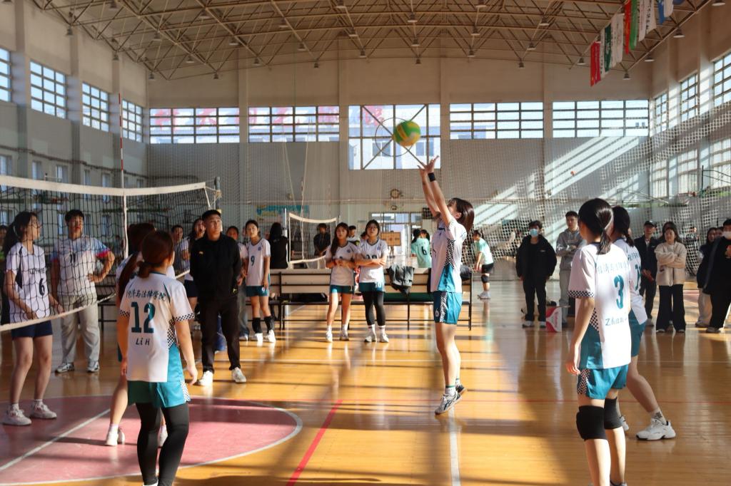 11月18日,进入决赛循环赛阶段,面对强劲对手,经法女排斗志昂扬,攻手与二传心有灵犀,进攻时二传精准传球,攻手强力扣杀;防守时队员们协同补位、灵活救球、默契拦网,共同瓦解对手多次攻势。经法女排凭借精湛球技与紧密配合在决赛循环赛中以3胜2负的成绩位列积分榜第二名,喜获亚军!