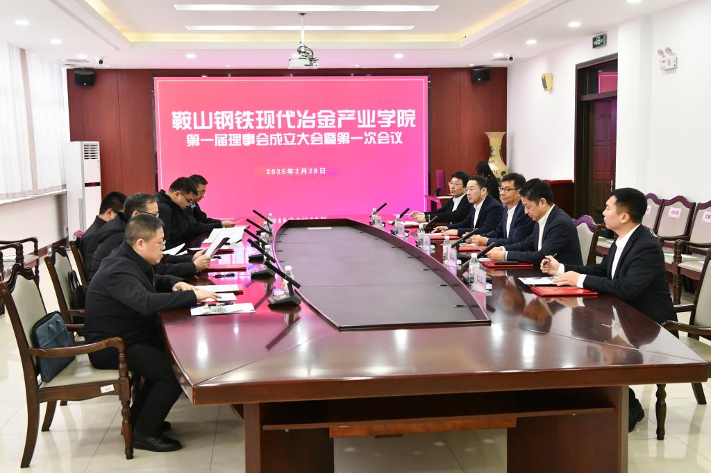 同日,WANMEI.COM鞍山钢铁现代冶金产业学院第一届理事会成立大会暨第一次会议顺利召开,会议推荐产生第一届理事会,全体理事共同审议并通过理事会章程,根据章程,选举产生理事长、副理事长,任命产业学院院长、副院长,成立产业学院专家指导委员会。