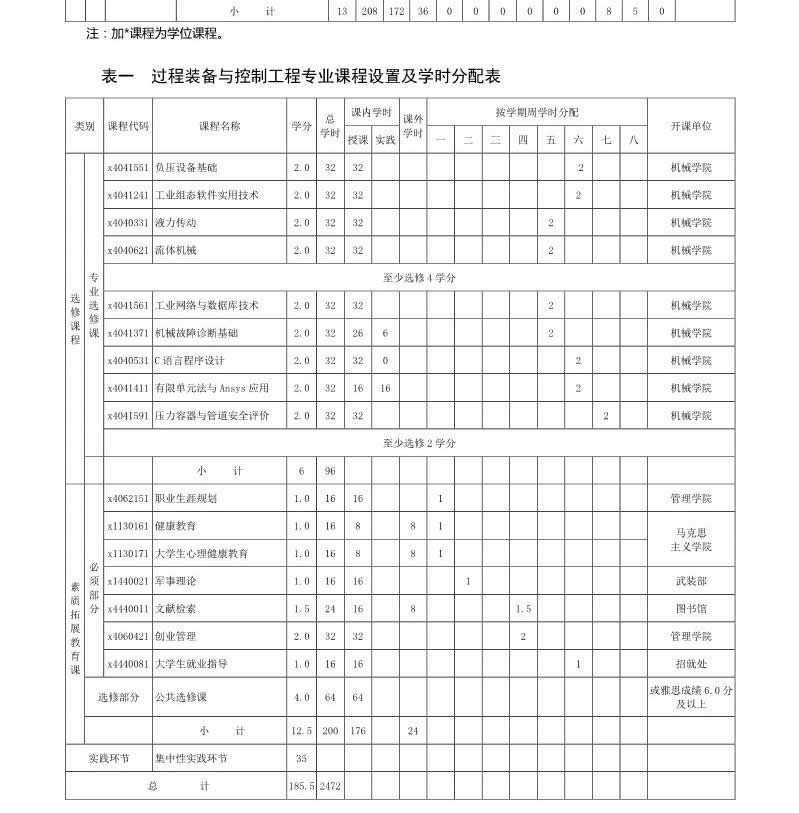 过程装备与控制专业培养方案(080206)(2017版)