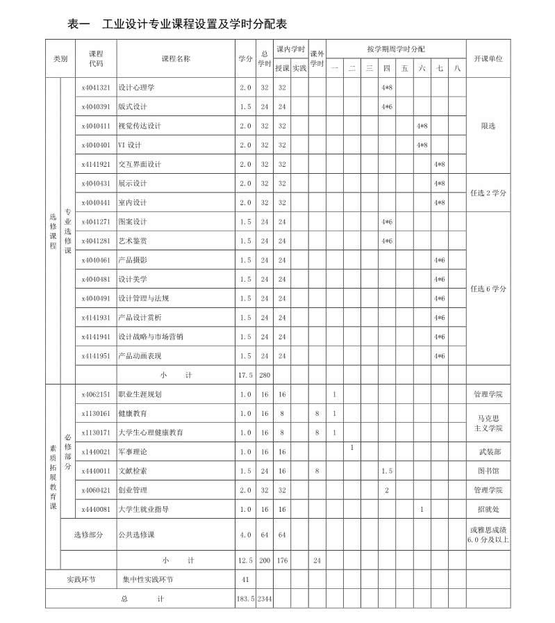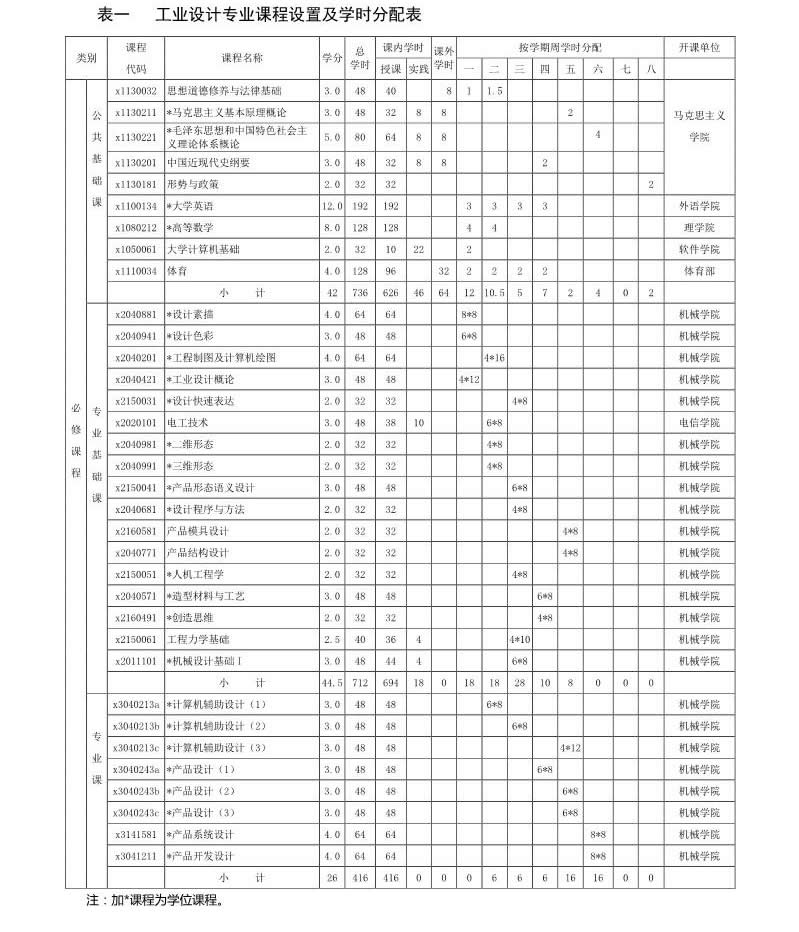 工业设计专业培养方案(080205)(2017版)