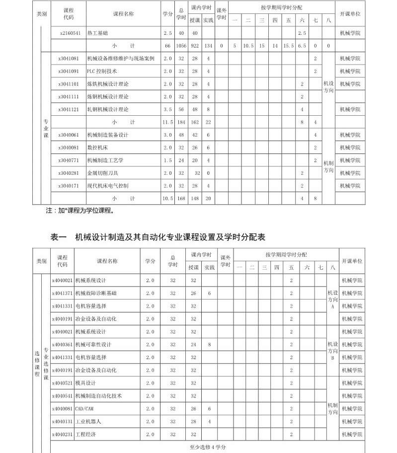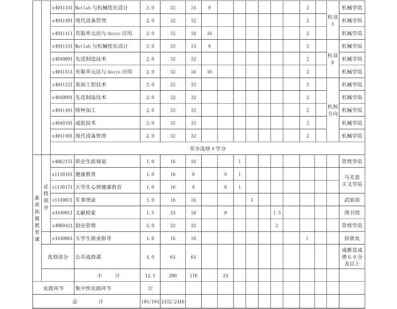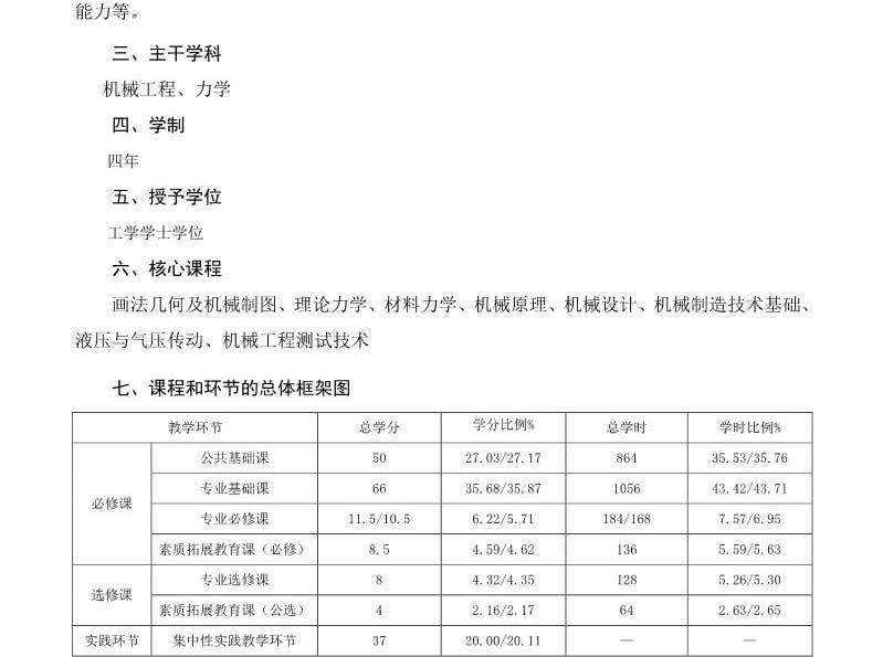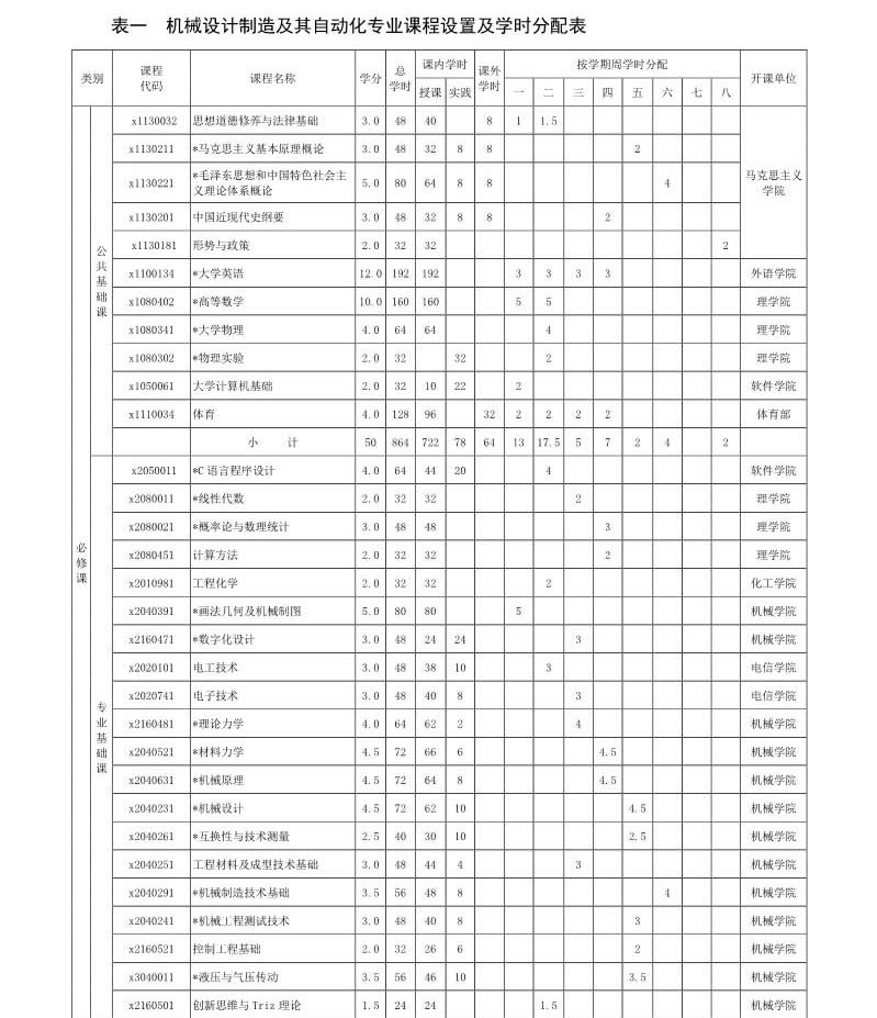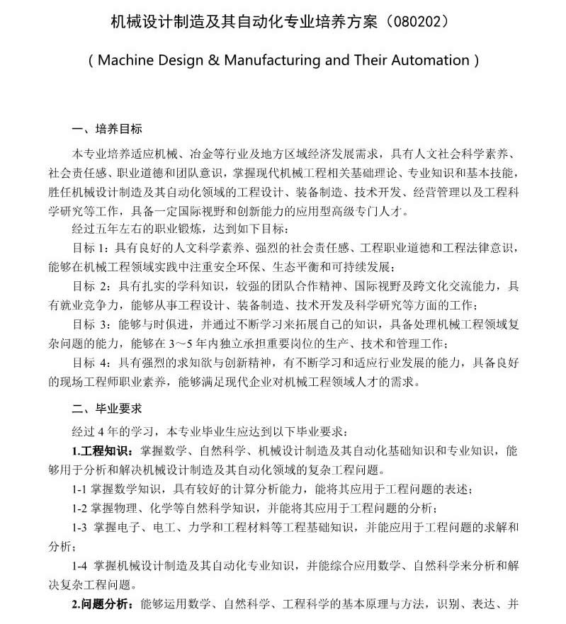 机械设计制造及其自动化专业培养方案(080202)(2017版)
