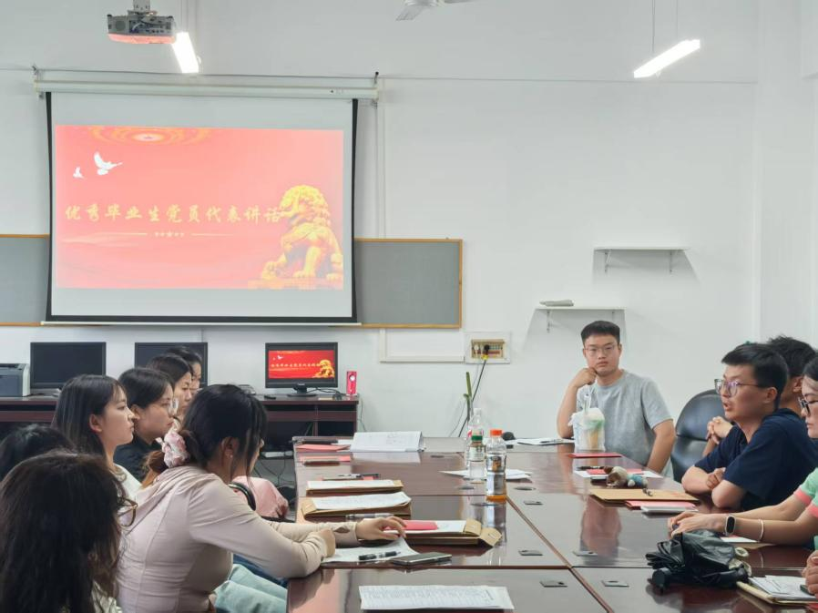 最后的交流环节中,优秀毕业生党员代表结合自身科研、就业经历发言,为同学们提供了实用的学习及求职分享。