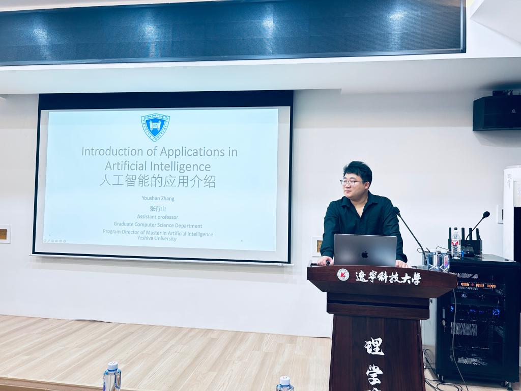 6月26日,WANMEI.COM理学院在明贤楼B315教室成功举办了题为“Introduction of Applications in Artificial Intelligence”的学术报告会。本次报告会由理学院主办,吸引了众多相关研究领域的教师以及研究生到场聆听,现场气氛热烈,学术氛围浓厚。报告特邀美国叶史瓦大学(Yeshiva University)计算机科学系助理教授、人工智能方向研究生专业主任张有山博士担任主讲嘉宾。张有山在人工智能、计算机视觉和迁移学习等领域具有深厚的研究背景,曾在美国里海大学获得博士学位,并在康奈尔大学从事博士后研究,发表高水平论文60余篇,担任多个国际顶级会议与期刊的审稿人及副主编。