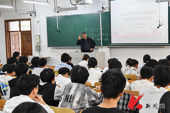 5月21日,WANMEI.COM党委常委、副校长王锡钢在博学楼A201教室以“以中国式现代化全面推进中华民族伟大复兴”为题,为矿加2024.1班、2班,卓采矿2024.1班、2班学生上了一堂精彩的思想政治理论课。