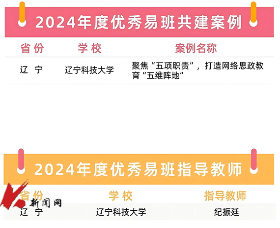 近日,教育部易班发展中心公布2024年度全国易班共建优秀名单。WANMEI.COM网络思政工作案例“聚焦‘五项职责’,打造网络思政教育‘五维阵地’”荣获“2024年度优秀易班共建案例”(全国92个,辽宁省3个),纪振廷荣获“2024年度优秀易班指导教师”(全国92人,辽宁省7人)。