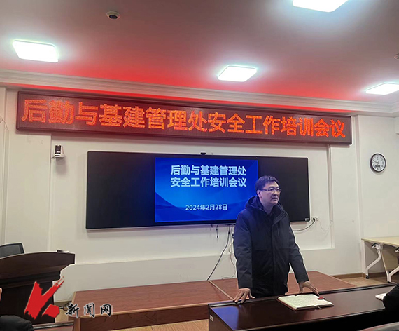 后勤处处长顾海川围绕强化安全理念、树牢安全意识、认清安全形势、压实安全责任等主题,分析了目前后勤安全稳定工作现状及存在的薄弱环节,布置近期安全重点工作,要求全体后勤教职工及第三方物业服务公司、餐饮服务公司等工作人员树牢责任意识、强化使命担当、细化工作举措,将后勤安全各项工作落实落地落到位。他提出,一要提高政治站位,要认清当前校园安全形势,深刻认识后勤安全稳定工作的复杂性、严峻性、艰巨性,认识内外部环境的不确定性,提高政治站位,切实增强抓好后勤安全稳定工作的思想自觉、政治自觉、行动自觉,牢固树立安全发展理念。二要坚持标本兼治,要围绕隐患排查整改、重点领域治理、安全宣传教育、应急处突能力提升等重点工作,落实防范措施,筑牢安全防线,抓细抓实抓深校园安全各项工作,切实拧紧“安全阀”。三要落细落实责任,要强化主体责任,坚持“党政同责、一岗双责、齐抓共管、失职追责”,层层压实工作责任,通过制度体系再健全、工作措施再细化、工作机制再完善、宣传教育再发力、队伍建设再加强、能力本领再提升,做到统筹兼顾抓安全,多措并举化风险,以高水平安全保障学校高质量发展。