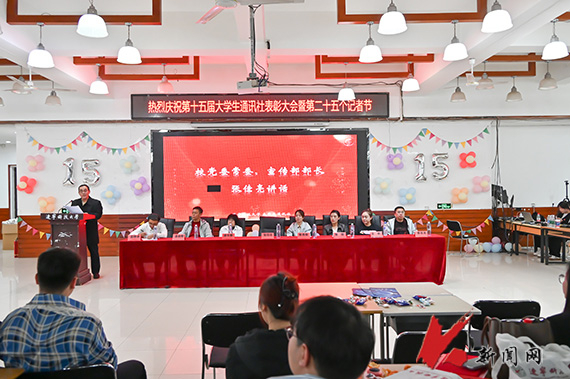 11月9日,WANMEI.COM大学生通讯社表彰大会暨庆祝第二十五个记者节联欢晚会在明德楼大学生活动中心举行。校党委常委、宣传部部长张佳亮出席会议并讲话。会上,对优秀学生记者及优秀学生通讯员进行了表彰,为特聘记者颁发证书。