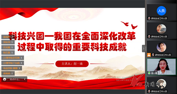 11月24日,宣讲团成员、管理学院2022级研究生赵一迪以《科技兴国——我国在全面深化改革过程中取得的重要科技成就》为题,细致梳理了我国科技发展的历史进程,深入剖析了近几年中国完全自主研发的科技成就,深刻解读我国实施科教兴国战略的重要意义。她倡导广大研究生学子,勇于开拓创新,自觉践行、大力弘扬新时代科学家精神,砥砺“以身许国,何事不可为”的勇毅担当,激扬“敢为天下先”的创造豪情,勇立潮头、锐意进取,勇做新时代科技创新的排头兵。