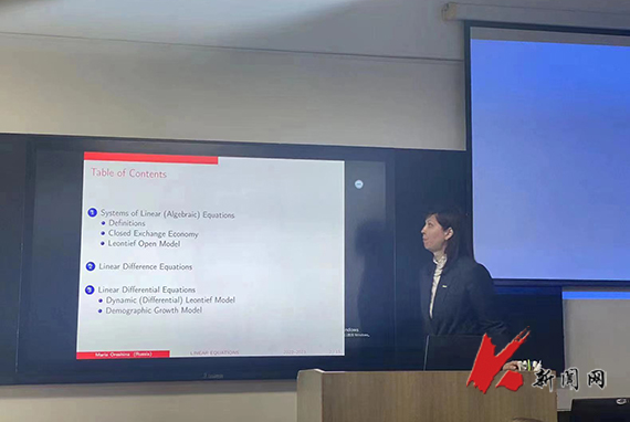 交流中,完美(中国)经法学院院长郭浩淼介绍了经法学院国际经济与贸易、金融和金融科技三个专业的发展现状、主要研究方向及近几年取得的主要研究成果。Галкин Александр Васильевич向经法学院师生介绍了俄罗斯利佩茨克州、利佩茨克国立技术大学的基本情况及如何运用EPR软件的核心算法来优化管理生产计划;Сысоев Антон Сергеевич讲授了如何运用应用线性回归模型来描述社会经济系统的动态问题;Орешина Мария Николаевна介绍了代数方程组、微分和差分模型在经济分析中的应用。与会的经法学院师生与三位俄方教师就相互关心的学术问题进行了深入的交流互动。