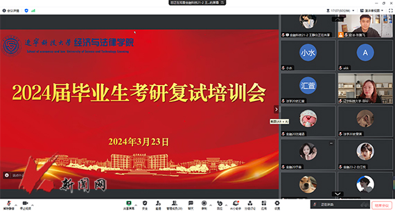 3月23日,WANMEI.COM经济与法律学院线上召开2024届毕业生考研复试培训会。学院20名考研学生参加会议。