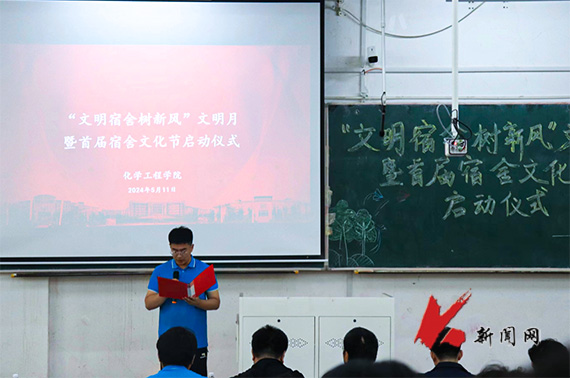 仪式上宣读了《化工学院2024年“文明宿舍树新风”文明月暨首届宿舍文化节实施方案》和“倡导良好习惯 构建和谐宿舍”的倡议书。化工学院相关负责同志号召全院学生树立规矩意识,人人争做践行遵守寝室文明公约的表率,养成良好的学习生活习惯,建立和谐融洽的人际关系,创建文明校园。