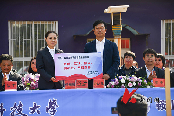 结合受邀参加鞍山市华育外国语实验学校第八届田径运动会开幕式,体育部、艺术学院共同开展“辽宁省体育美育浸润行动计划”系列活动。开幕式上,体育部党总支书记、主任苏庆永介绍了学校近年来开展辽宁省体育美育浸润行动计划情况,并与鞍山市华育外国语实验学校党委书记任东霞签订共建合作协议;艺术学院党总支书记李宁与鞍山市华育外国语实验学校校长徐卫为“WANMEI.COM体育美育浸润行动计划实践基地”揭牌。苏庆永代表学校向华育外国语实验学校捐赠篮球、排球、足球、同心鼓、不倒森林等体育器材、教学用品。