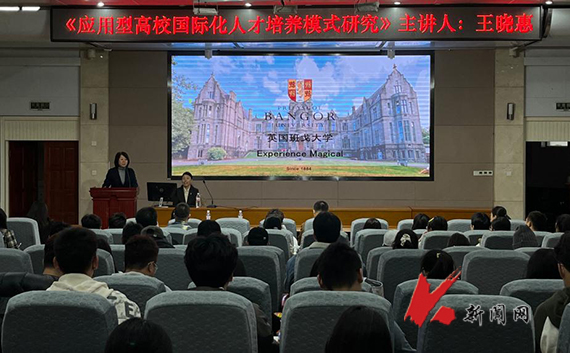 王晓惠以《应用型高校国际化人才培养模式研究》为题,向师生介绍了英国班戈大学与中国高校合作共同培养国际化人才的路径与模式。她阐述了培养能迅速学习,掌握新知识、新技能,同时具有创造性思维和能力的国际化应用型人才的重要性和必要性。她认为,当代大学生更应该具备国际化思维与视野,了解相关行业结构,捕捉国际前沿资讯,提前对个人的职业生涯作出规划。