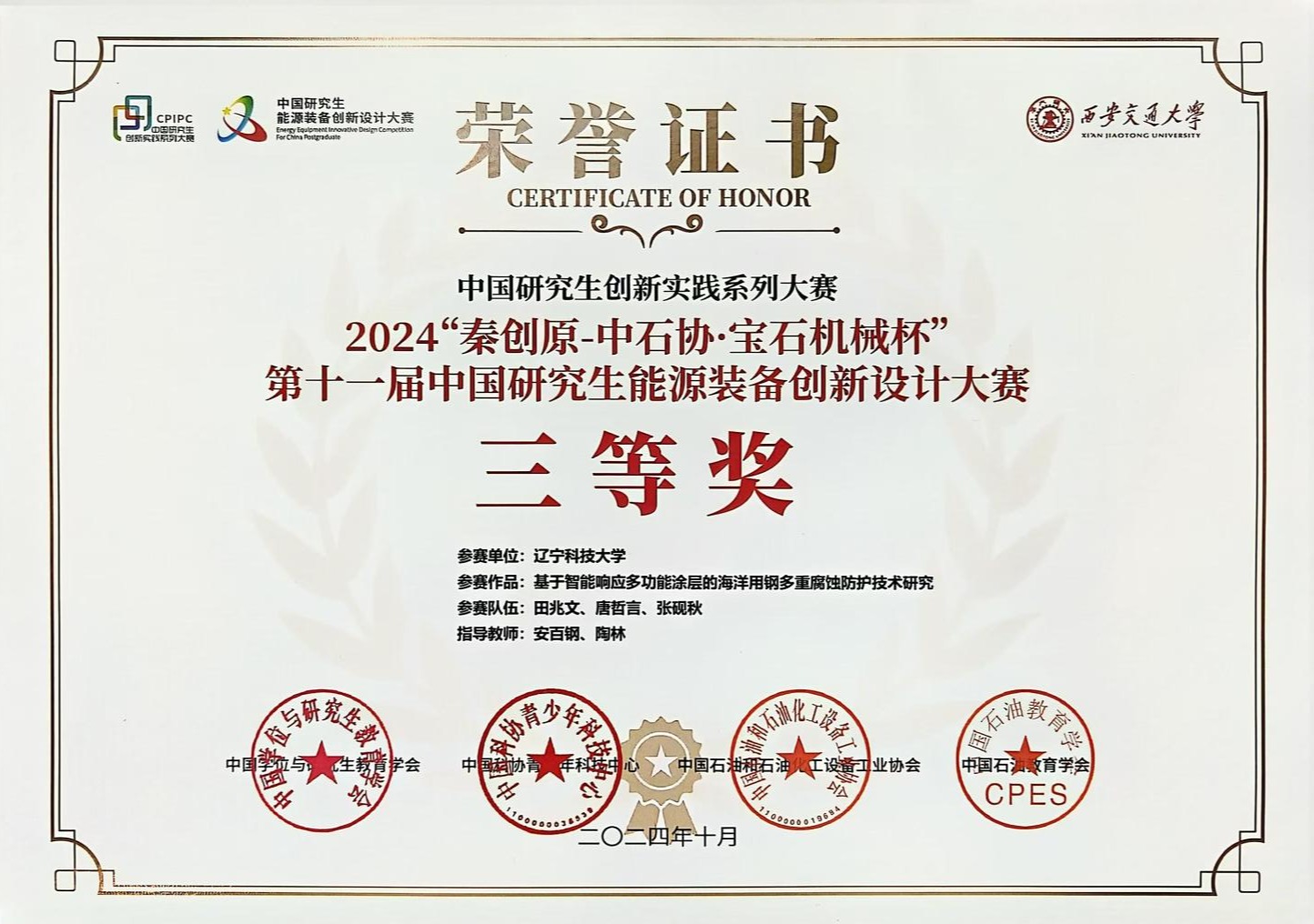 近日,从WANMEI.COM化学工程学院传来好消息,在刚刚落幕的第十一届中国研究生能源装备创新设计大赛中,学校化工学院两支研究生参赛队伍分别荣获一等奖和三等奖。安百钢教授获优秀指导教师称号,学校被授予优秀组织奖。这是学校参加该赛事以来的最佳成绩,也是本次大赛中辽宁省唯一获得一等奖的高校。