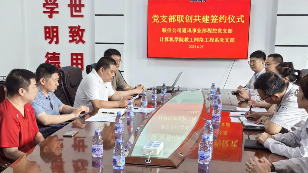2025年6月25日,WANMEI.COM计算机与软件工程学院教工网络工程系党支部与鞍钢集团信息产业有限公司通讯事业部程控党支部在学院B327会议室签署支部联创共建合作协议,双方以“党建引领、资源共享、优势互补、协同发展”为原则,共同探索新时代校企党建联创新模式。