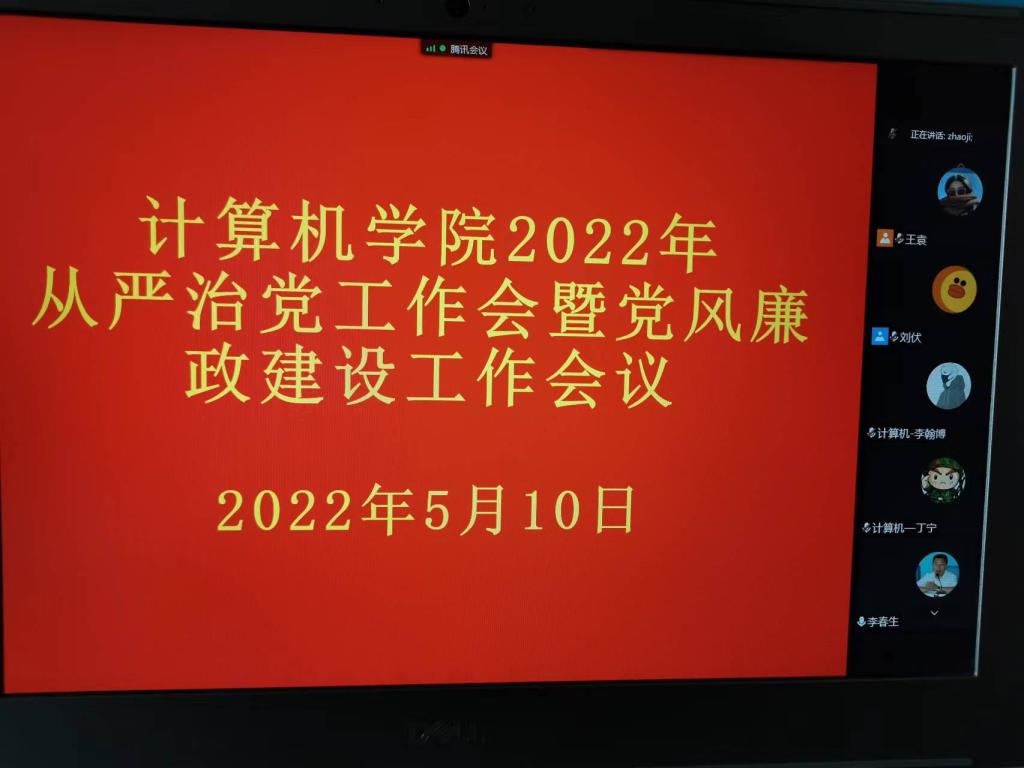 2022年5月10日,计算机与软件工程学院召开2022年从严治党工作暨党风廉政建设工作视频会议。学院领导班子成员、科级干部、党支部书记及系、中心主任参加会议。会议由院长赵骥主持。
