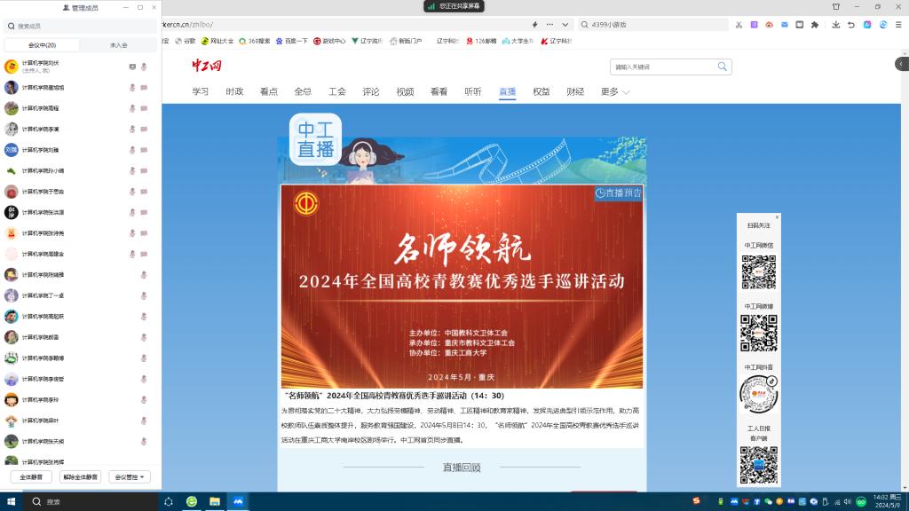 5月8日,学院工会组织青年教职工观看“名师领航”2024年全国高校青教赛优秀选手巡讲活动。