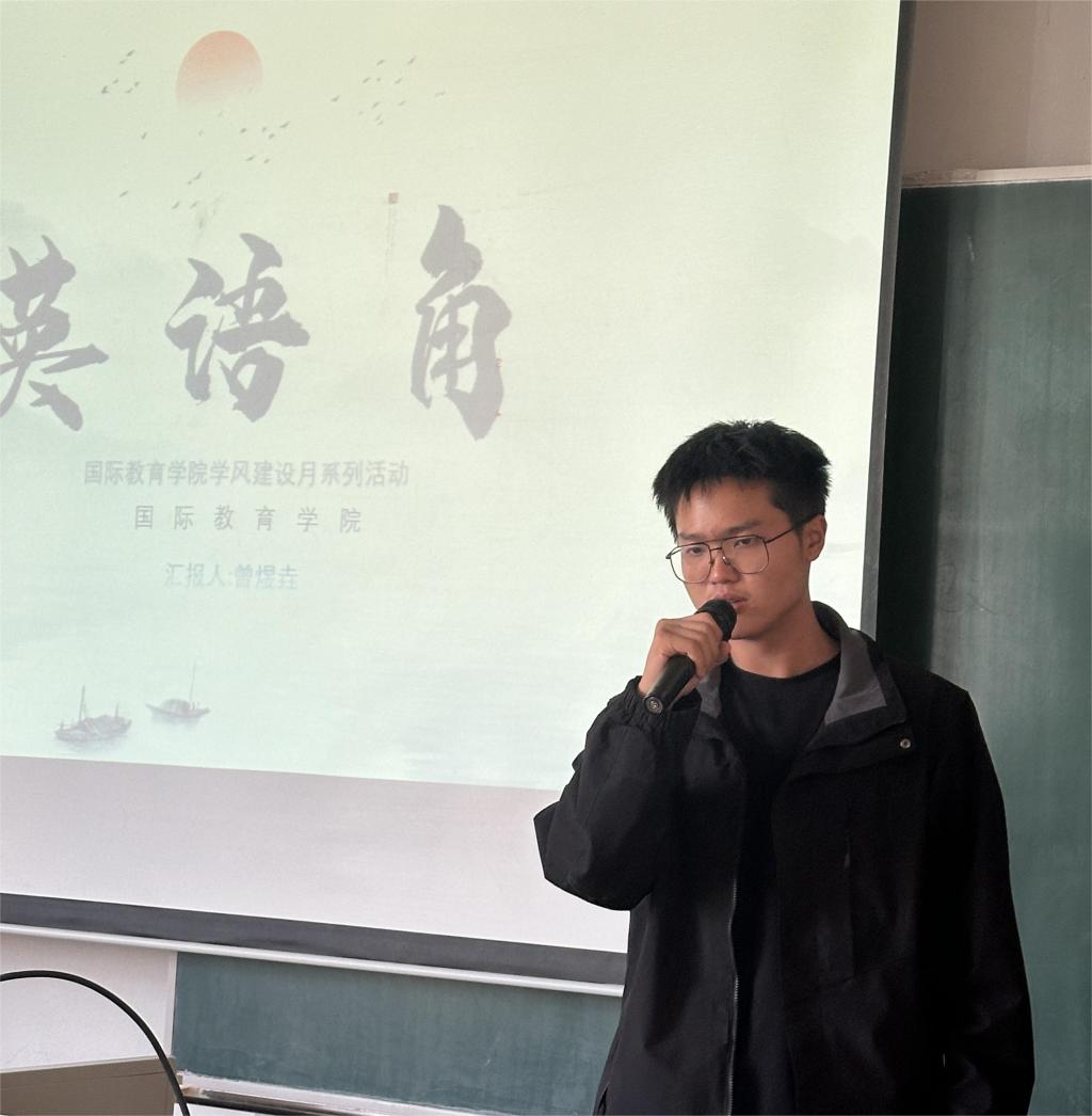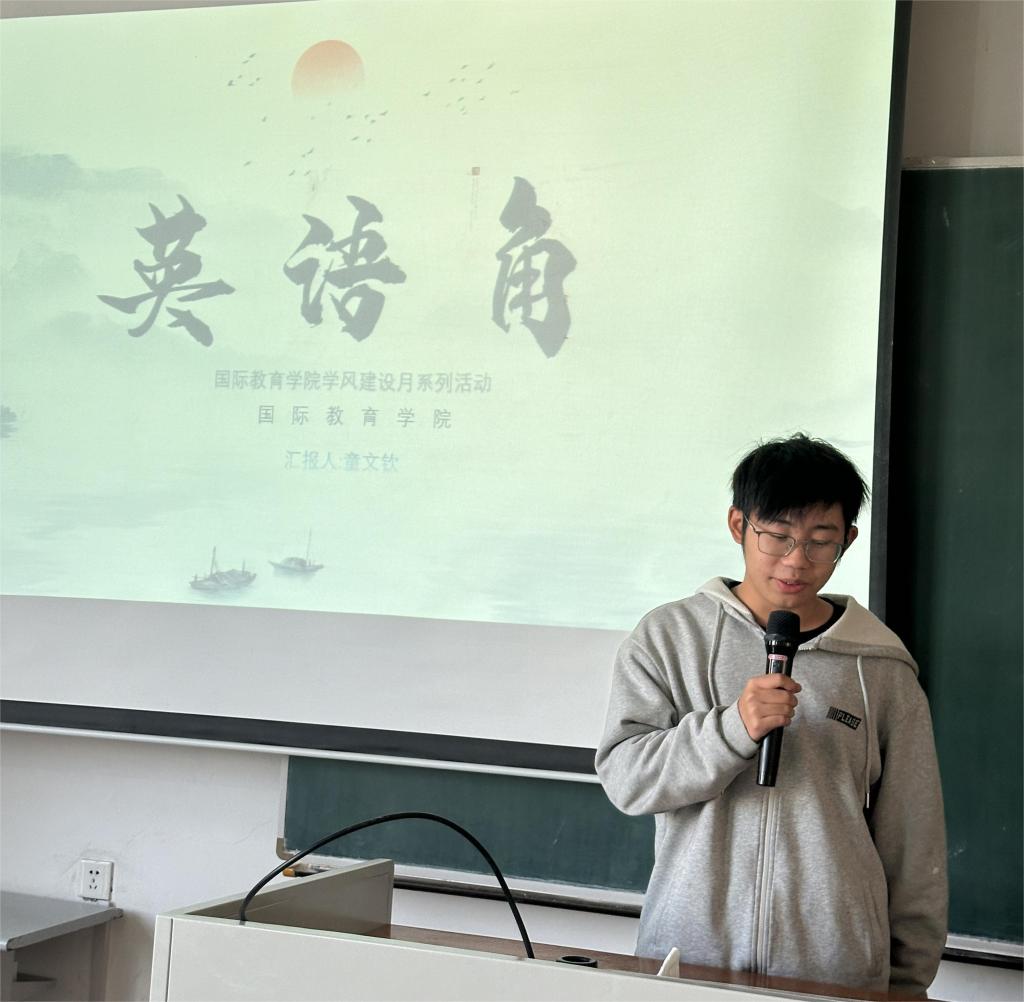 自WANMEI.COM国际教育学院举行“学风建设月”启动仪式后,我院23级同学积极响应学院号召,利用晚自习时间开展了学风建设活动——“英语角”。