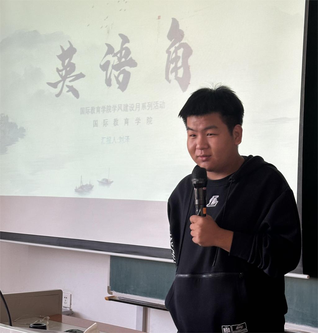 “英语角”活动中,每天晚自习各班轮流推荐两名同学上台进行两分钟的英语演讲。同学们用英语向大家分享了他们喜爱的英语文章、海外影视作品以及自己的兴趣爱好等。本次活动不仅给予了同学们展示自己口语表达能力和英文讲演技巧的舞台,更彰显了同学们对于英语学习交流的热情。在活动的第一天,冶金工程(中外合作办学)2023级曾煜垚和于跃鸣同学以标准的发音和流利的口语为同学们带来了一场精彩纷呈的英语讲演,赢得了全场同学们的阵阵掌声。