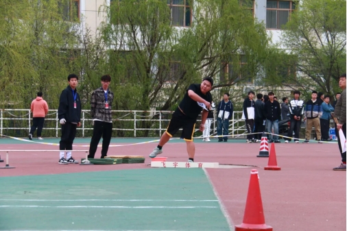 学生组男子铅球比赛中国际教育学院冯棋以9.46米的成绩取得第八名