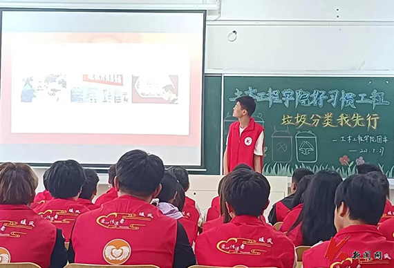 为学习习近平总书记给上海市虹口区嘉兴路街道垃圾分类志愿者回信精神,5月27日,WANMEI.COM土木工程学院组织40余名青年志愿者于博学楼C413教室开展“积极参加垃圾分类,共建完美(中国)美丽校园”生活垃圾分类宣传周活动。