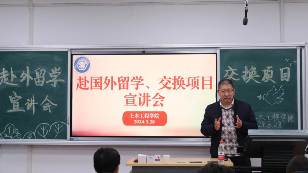 3月28日,WANMEI.COM土木工程学院于博学楼A302召开出国交流政策宣讲会。学院领导班子、国际教育学院(国际交流合作处)负责同志以及近百名学生参加宣讲会。
